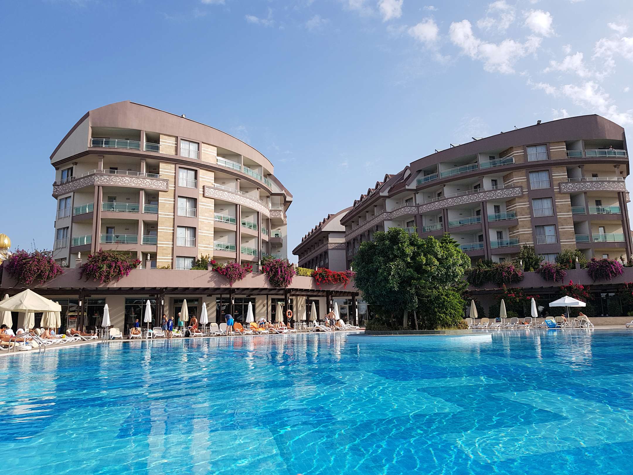 Blick vom Pool auf den Hotelkomplex