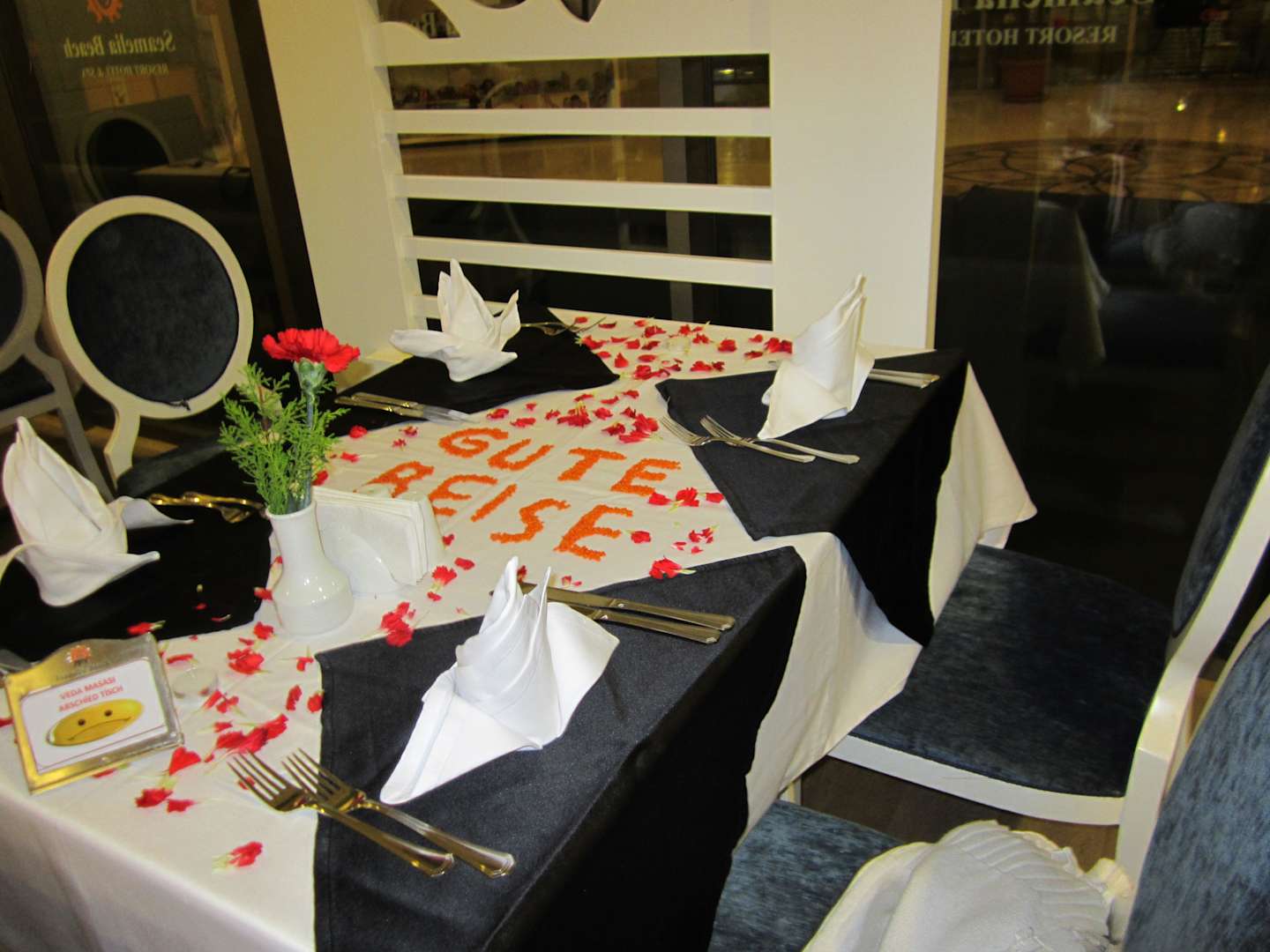 Leider schon AbschiedDiese schöne Geste strahlte noch mal die herzliche Freundlichkeit des gesamten Personals sowie diePhilosophie des Hotels aus.