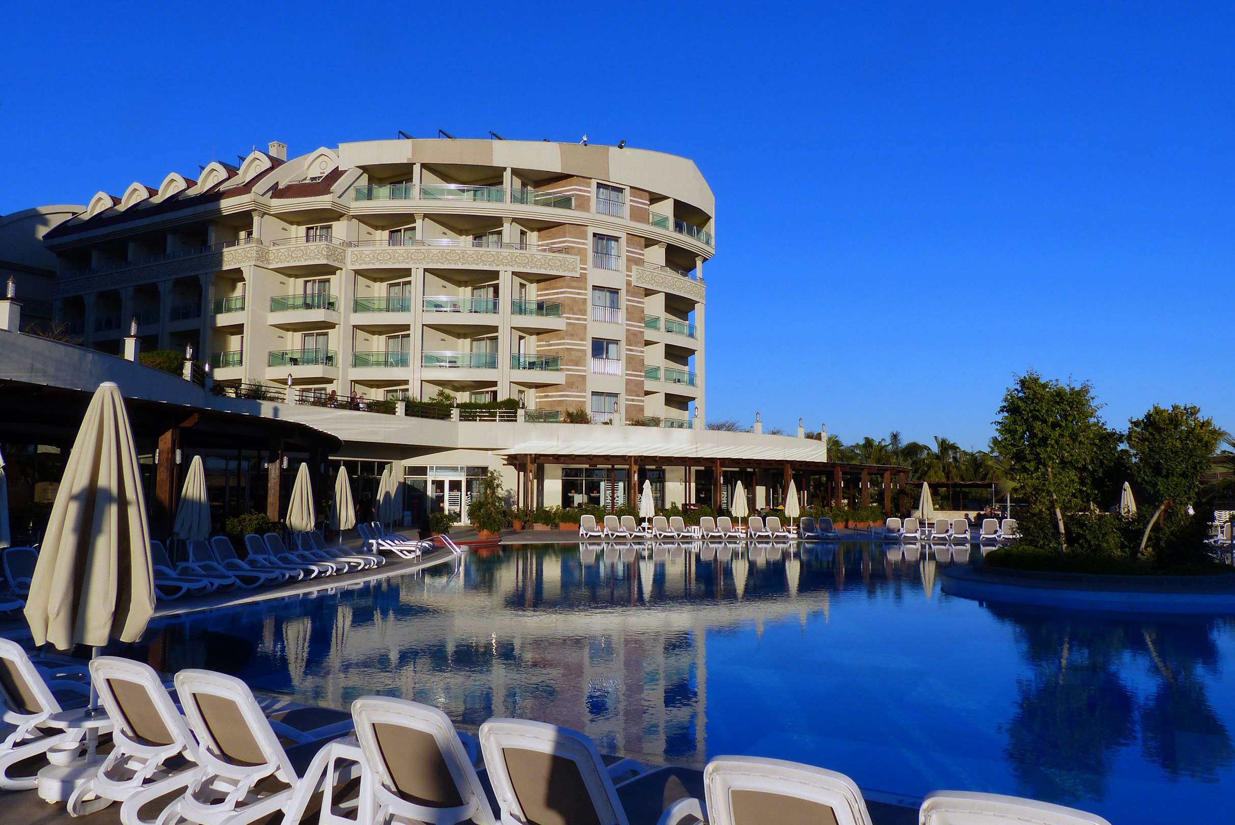 Blick vom Pool auf den rechten Teil des Hotels