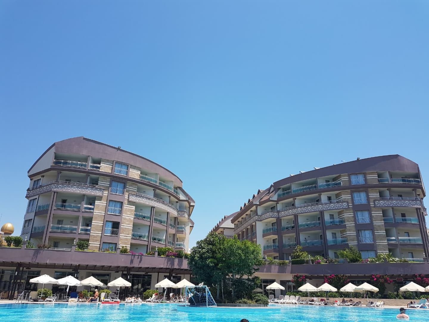 Beide Hotelblöcke vom Pool aus