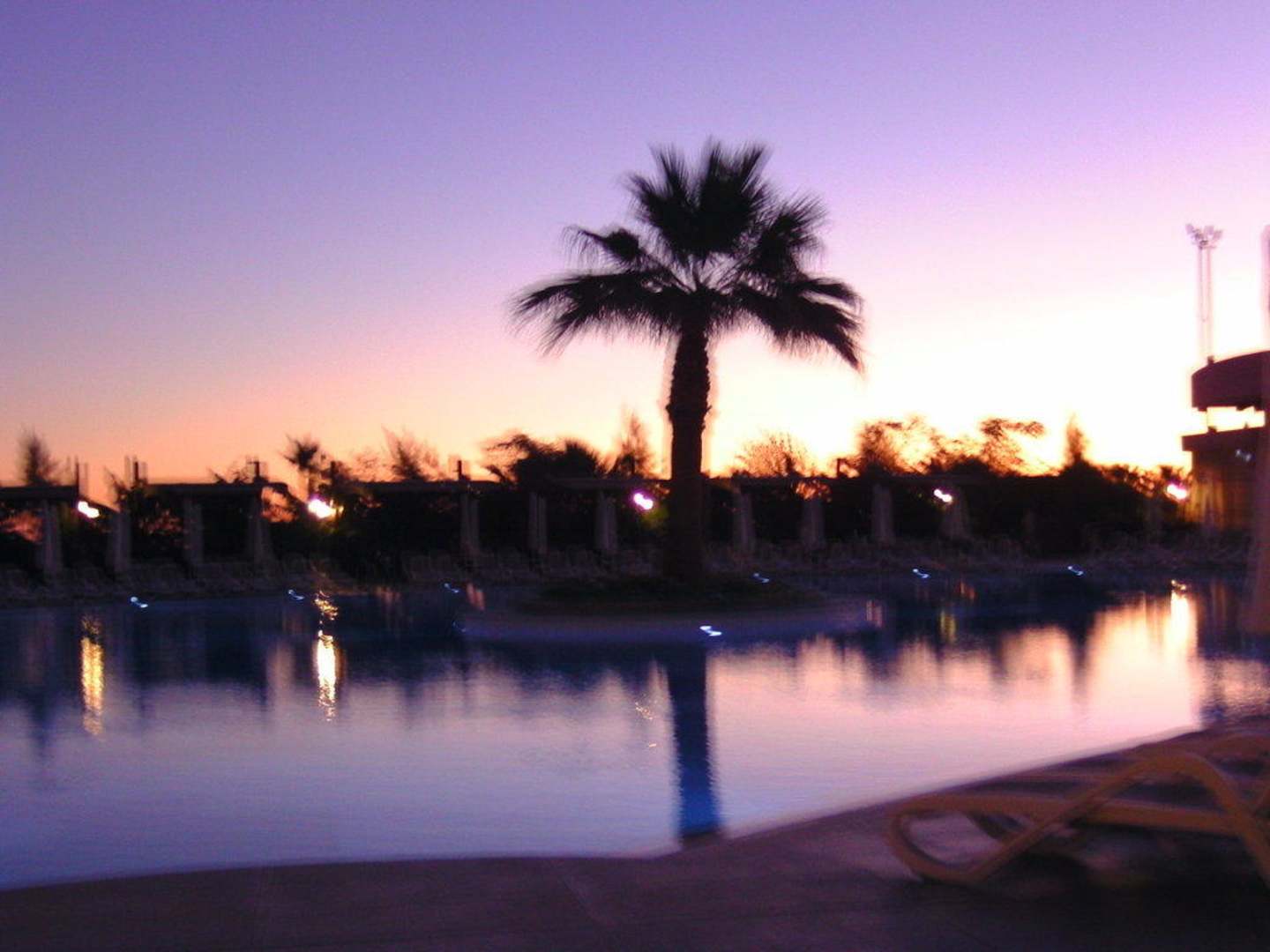 Sonnenuntergang am PoolMitten im Pool steht diese Palme und fasziniert den Sonnenuntergang.
