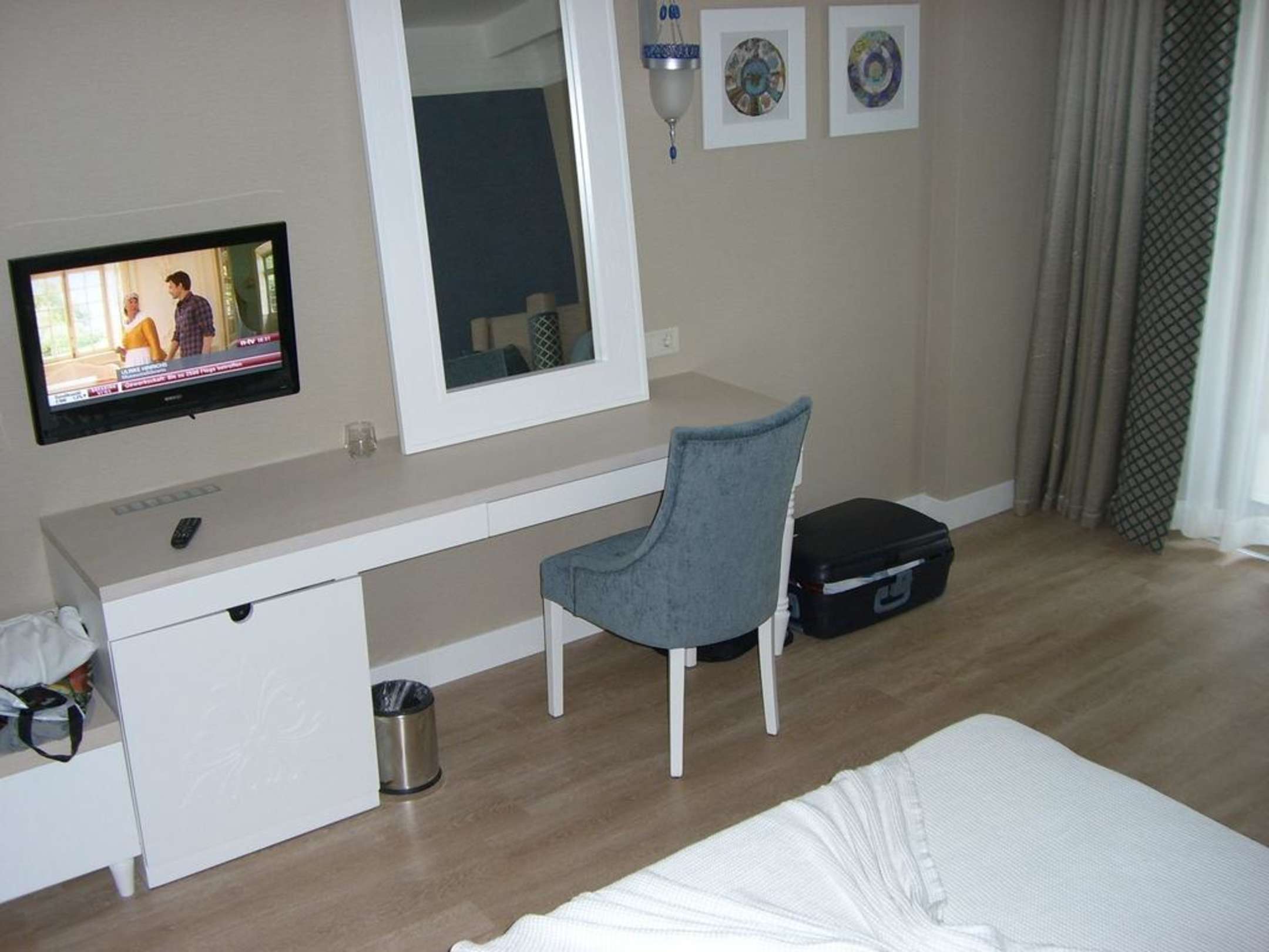 schreibtisch mit tv