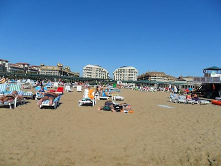 Der Strand mit Blick aufs Hotel