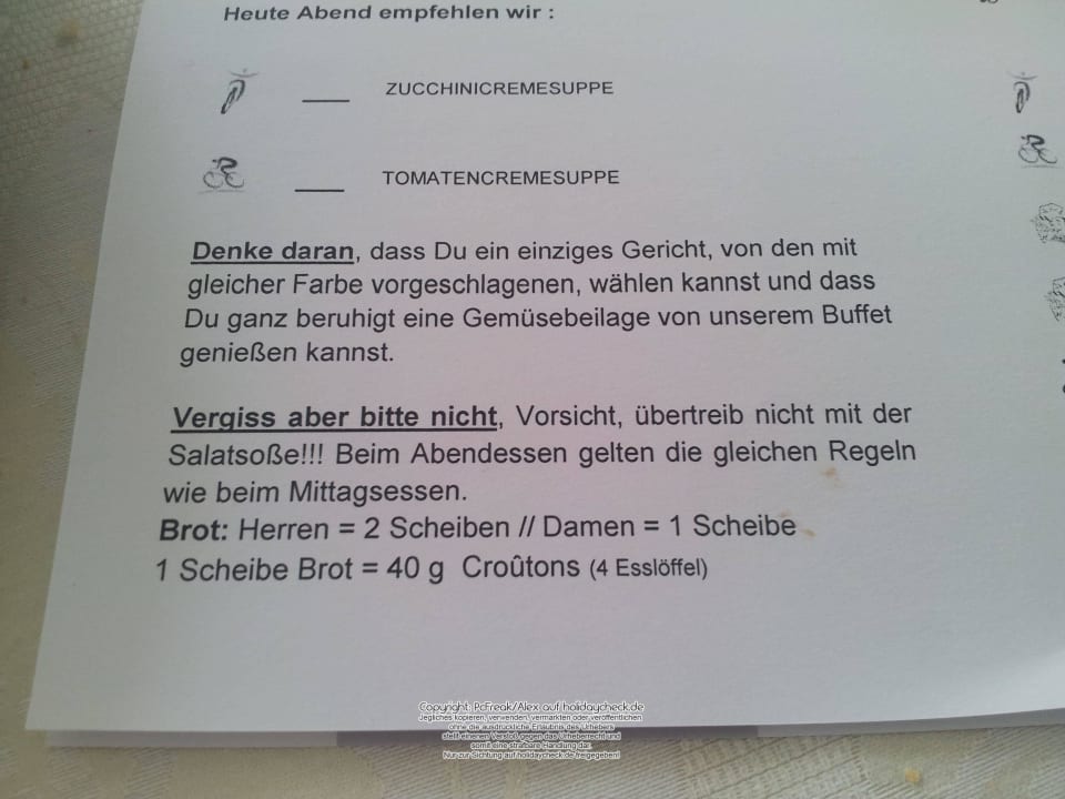 Netter Hinweis auf der Speisekarte