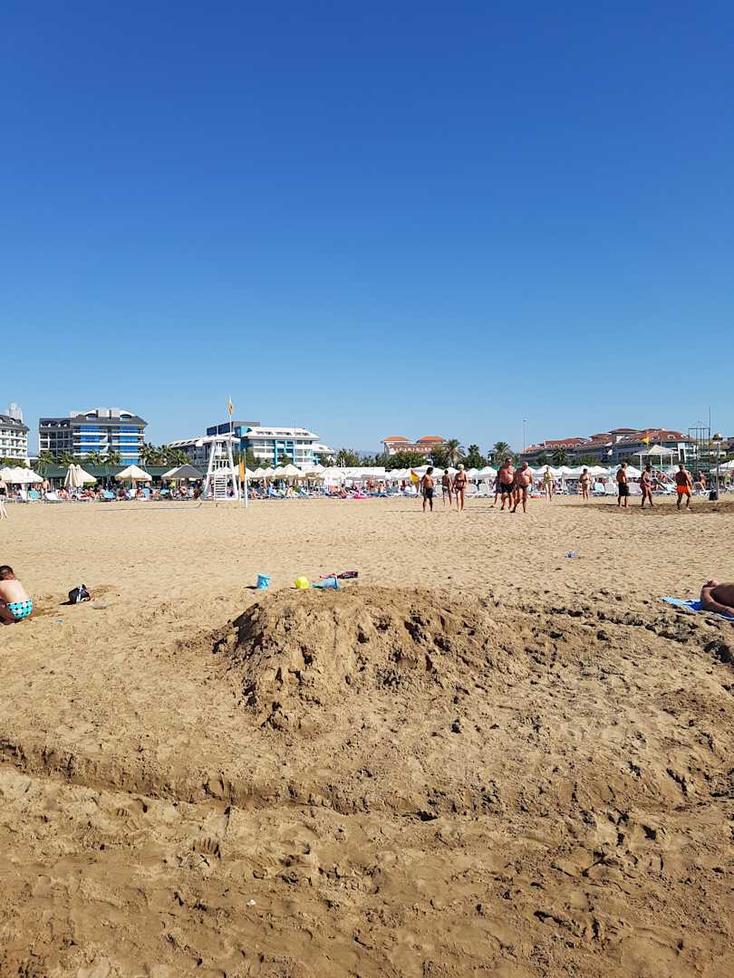 Blick vom Strand zum hotel