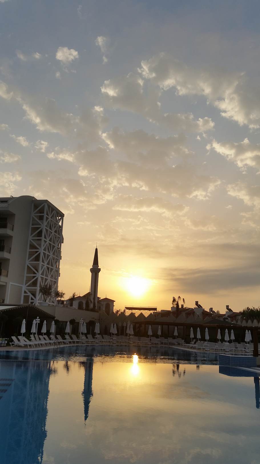 Guten Morgen, Sonnenaufgang über der Crown SunShine Pool Anlage