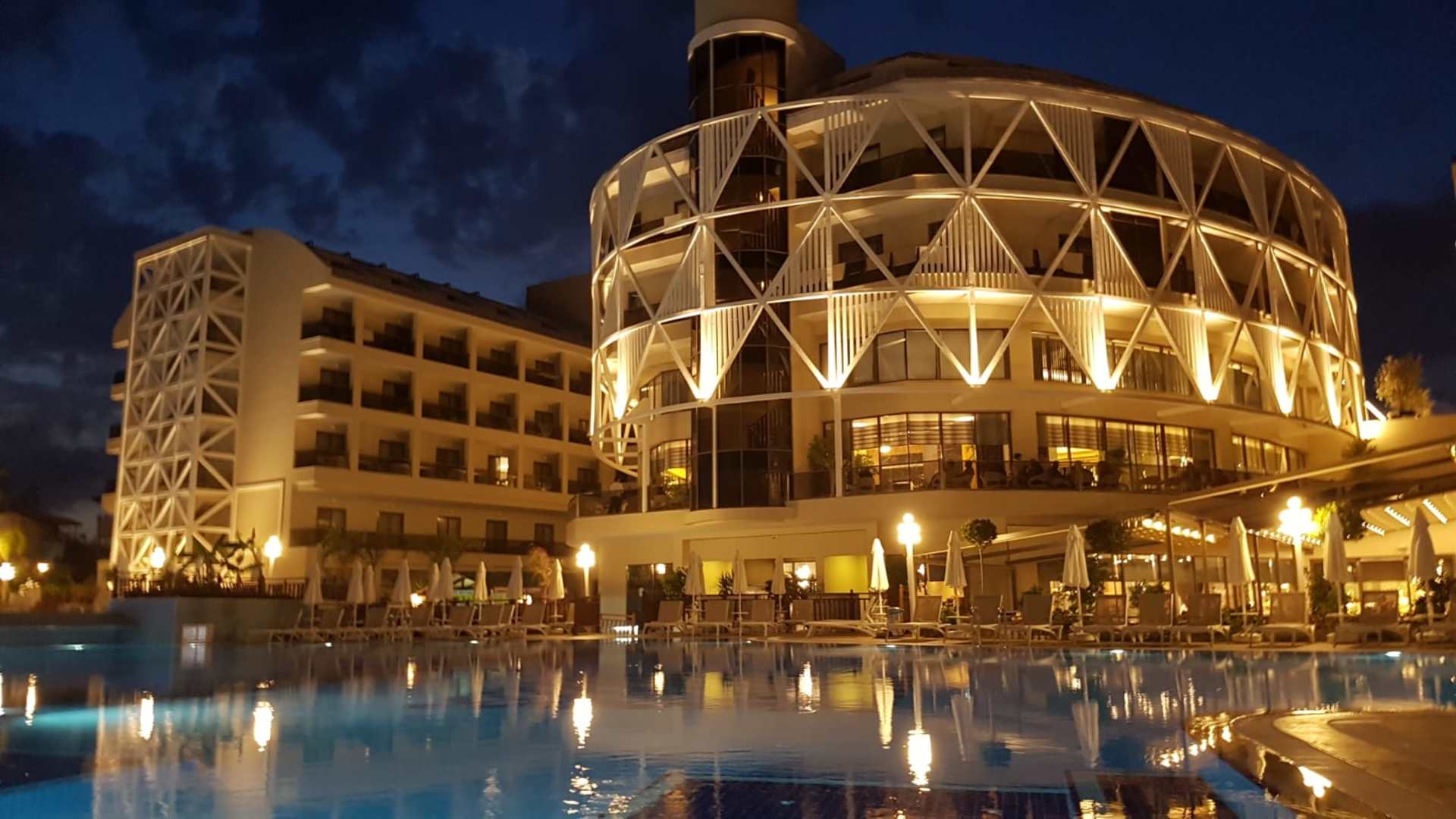 Hotel beleuchtet am Abend