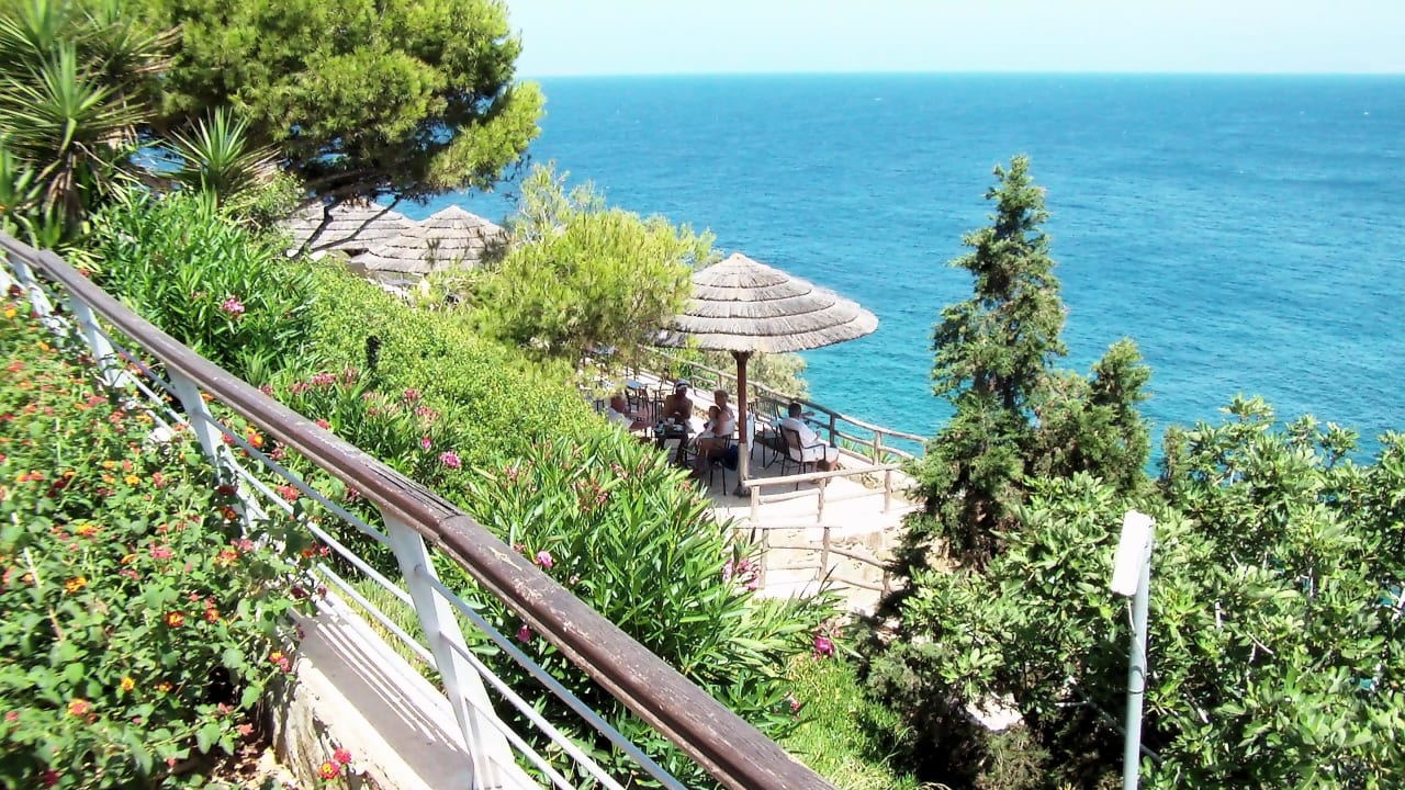 Blick aufs Meer über die Terrasse der unteren Poolbar