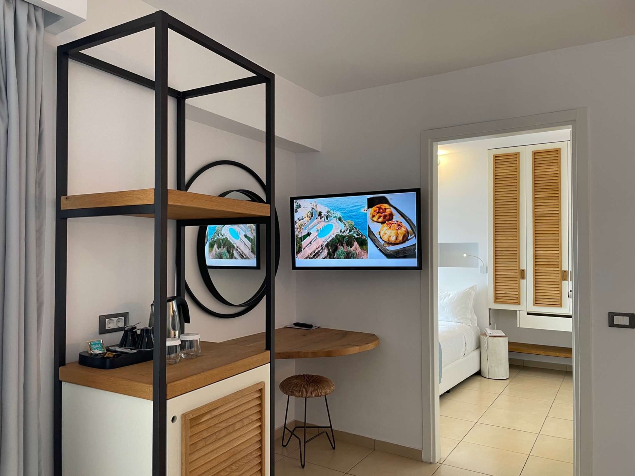 Wohnzimmer, mit TV und Kühlschrank