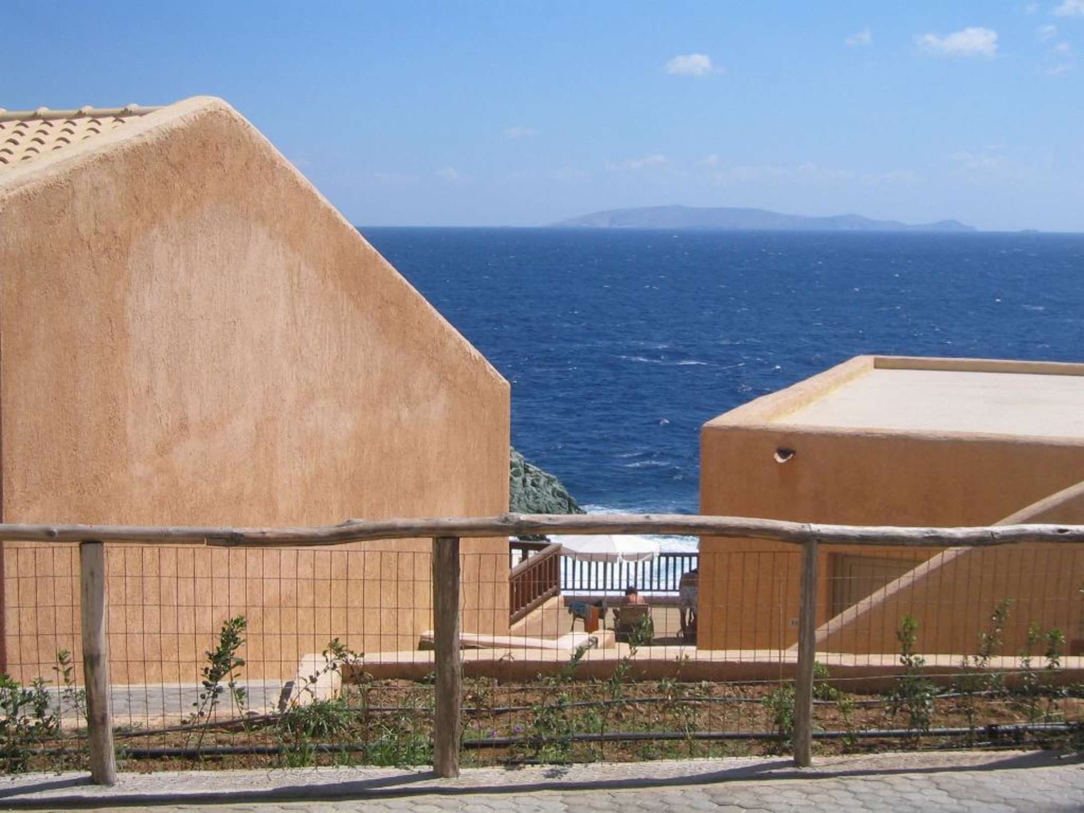 Blick von der Terrasse unseres Zimmers über das Meer in Richtung Heraklion