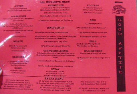 Speisekarte vom Chinesischen Spezialitätenrestaurant