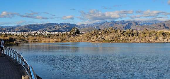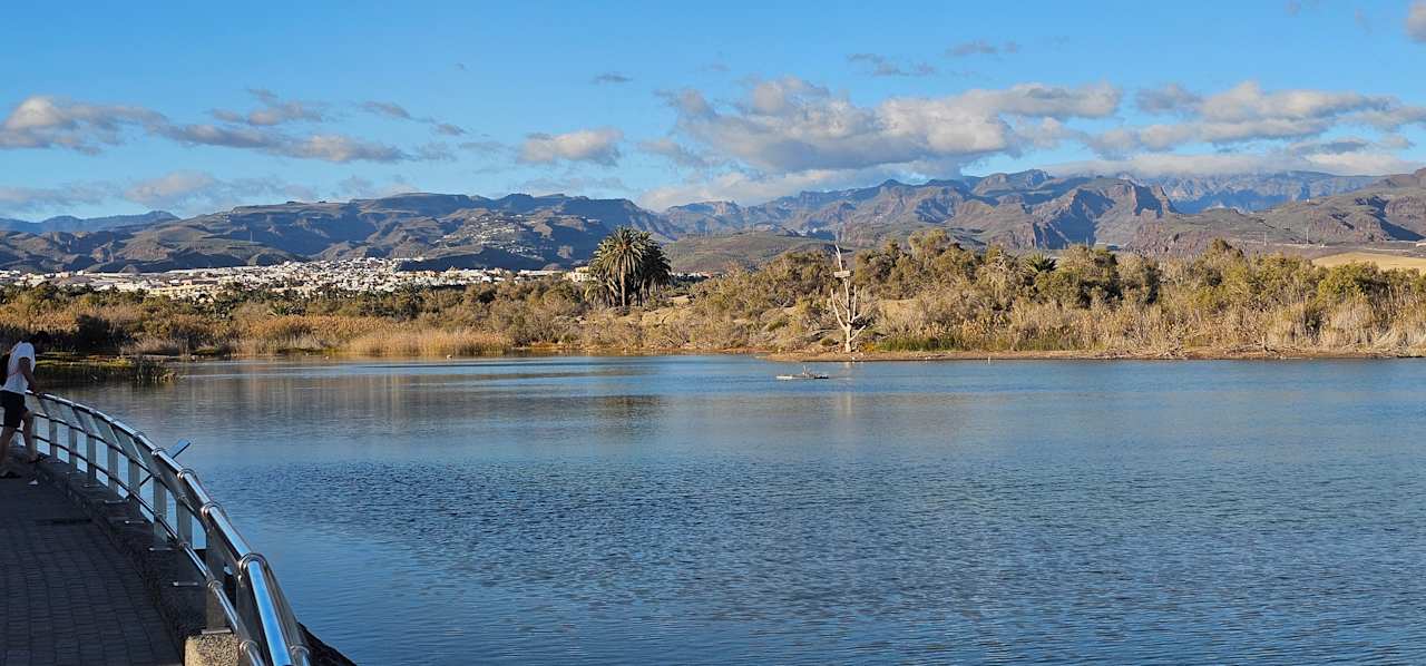 Sicht von der Lagune am Palm Beach in die Berge