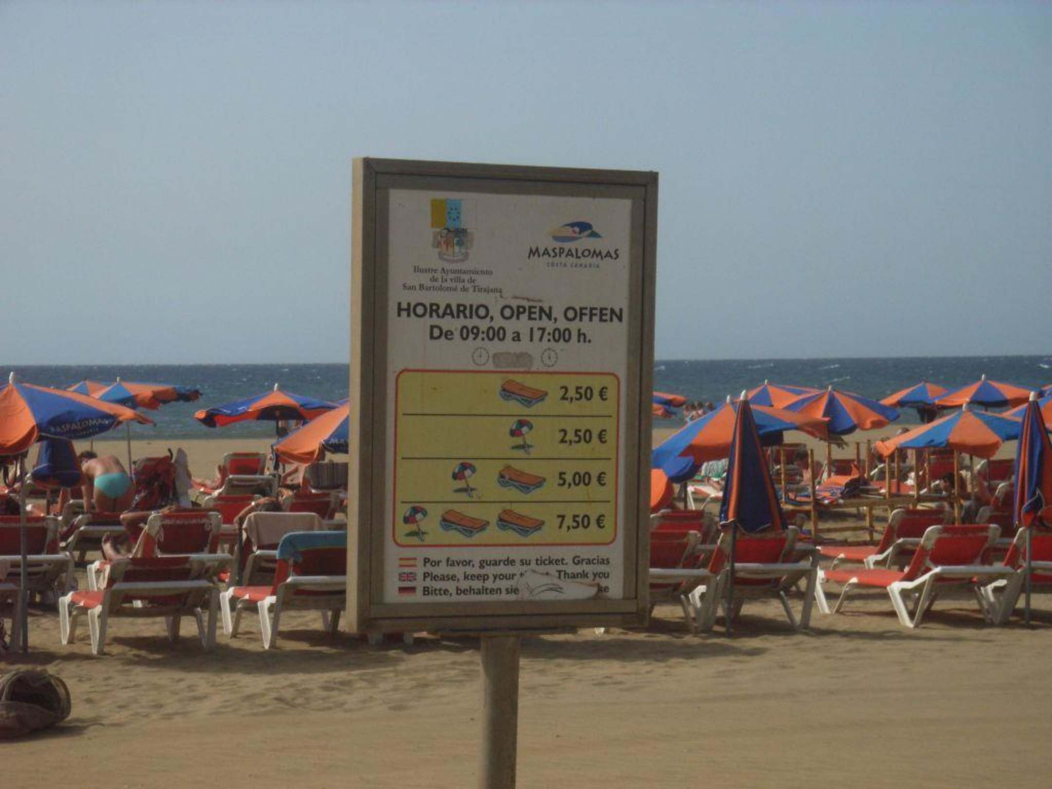 Hier eine Übersich über die Preise für Liegen und Schirm pro Tag am Strand.