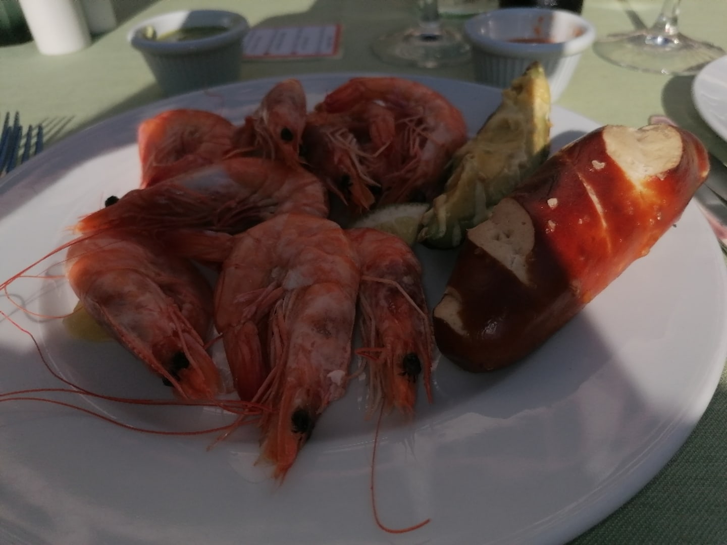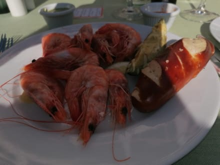 Vorspeise mit Garnelen und frischen Laugenstange
