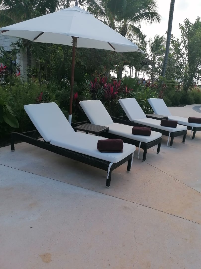 Liegen an Pool 2. Jeden Morgen haben Angestellte zusammengerollte Handtücher auf den Liegen an allen Pools und am Strand verteilt, darüber hinaus standen überall Kisten mit frischen Handtüchern, an denen man sich jederzeit bedienen konnte.