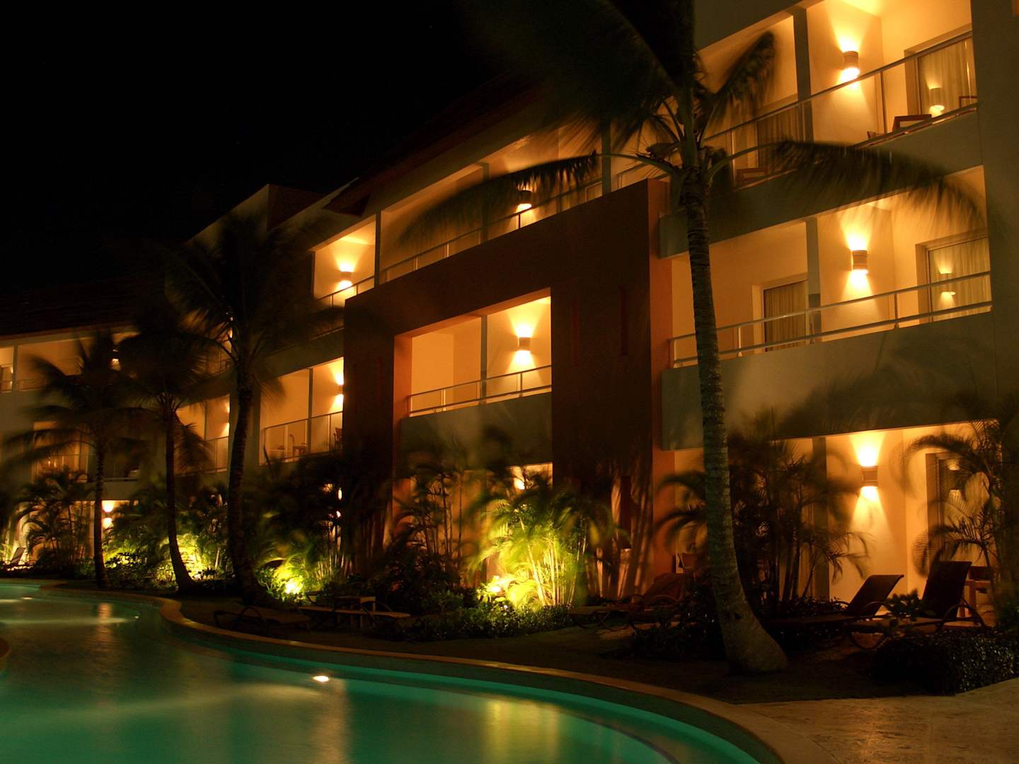 Pool und Wohngebäude bei Nacht