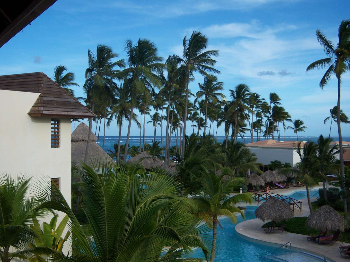 Schöne Aussicht vom Balkonzimmer 1. OG auf den Poolbereich/Strand