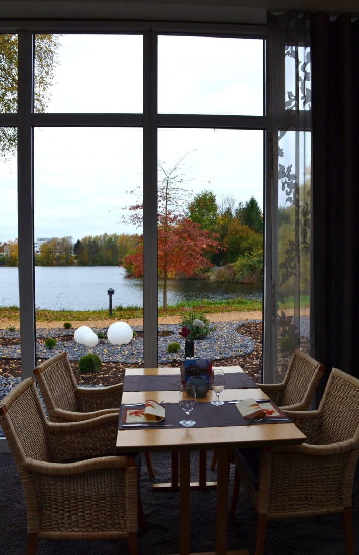 Wintergartenrestaurant mit Blick auf den See