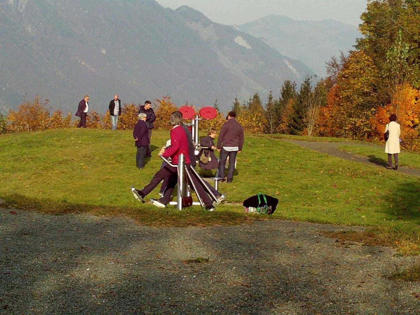 Fitnessgeräte im FreienHinter dem Hotel, neben dem Waldhaus hat's einen kleinen Park an Fitnessgeräten.