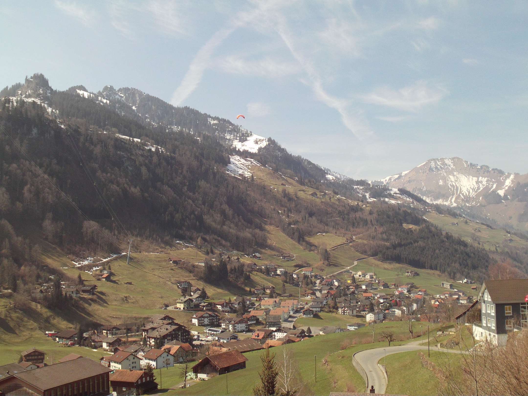 Wenn mal die Sonne scheint, so hat man eine gute Aussicht auf das hübsche Dorf, das man binnen Minuten zu Fuss ereichen kann.