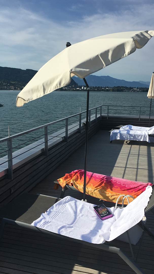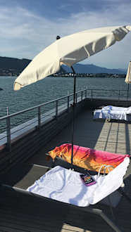 Das Sonnendeck des Badehauses mit seinem tollen Ausblick