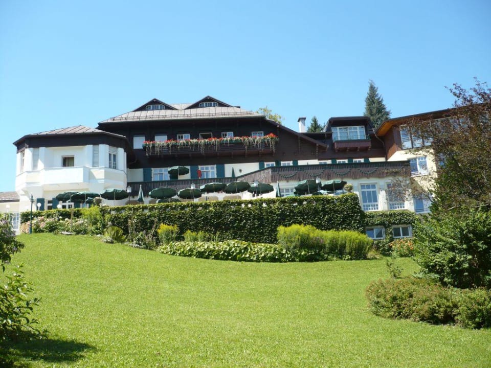 Blick vom Garten auf das Hotel