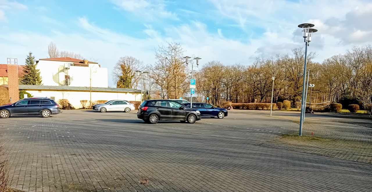 Der Hotelparkplatz.
