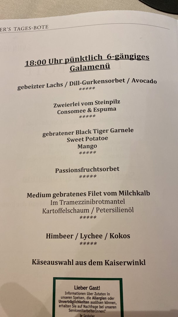 Freitags gibt es ein traumhaftes Galamenü, welches du den Seniorchef moderiert wird!