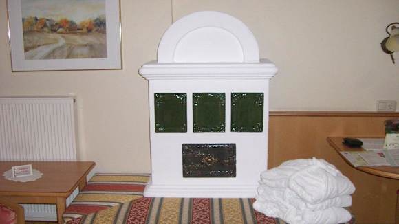 Ofen mit Sitzecke im Zimmer