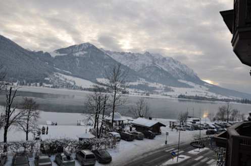 Blick auf See am Winterabend