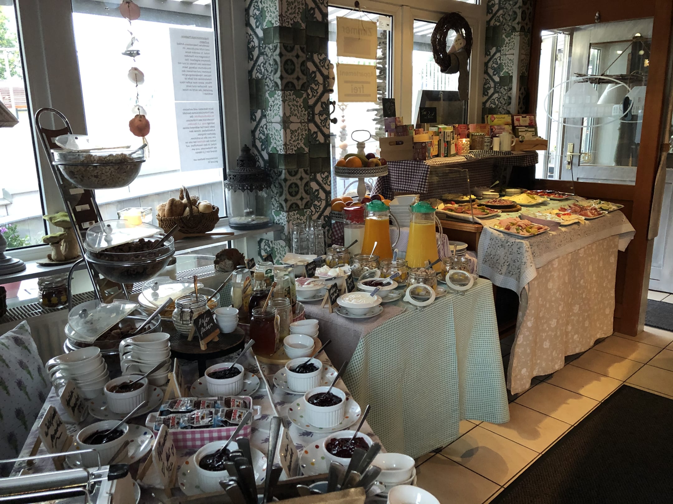 Dieses Frühstücksbüffet wird täglich liebevoll für die Gäste hergerichtet und ständig nachgefüllt