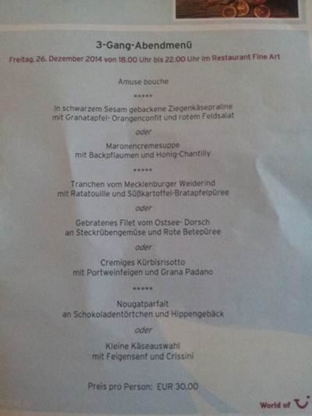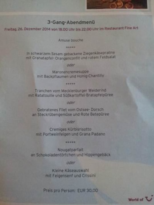 Menuekarte sehr tolle Gerichte