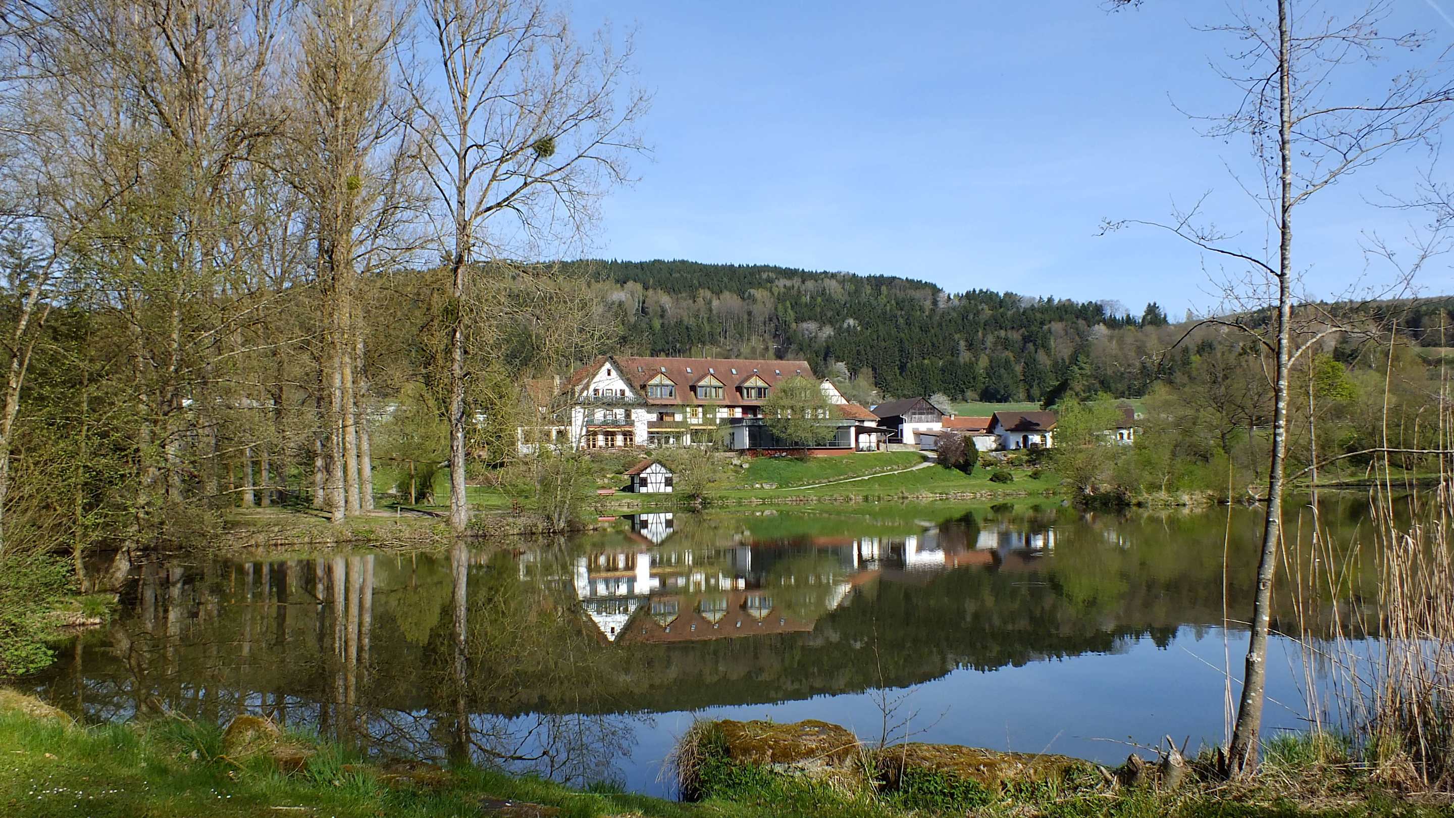 Blick vom See auf das Hotel