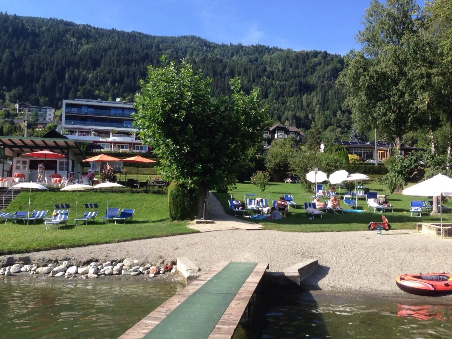 Blick vom See auf das Hotel