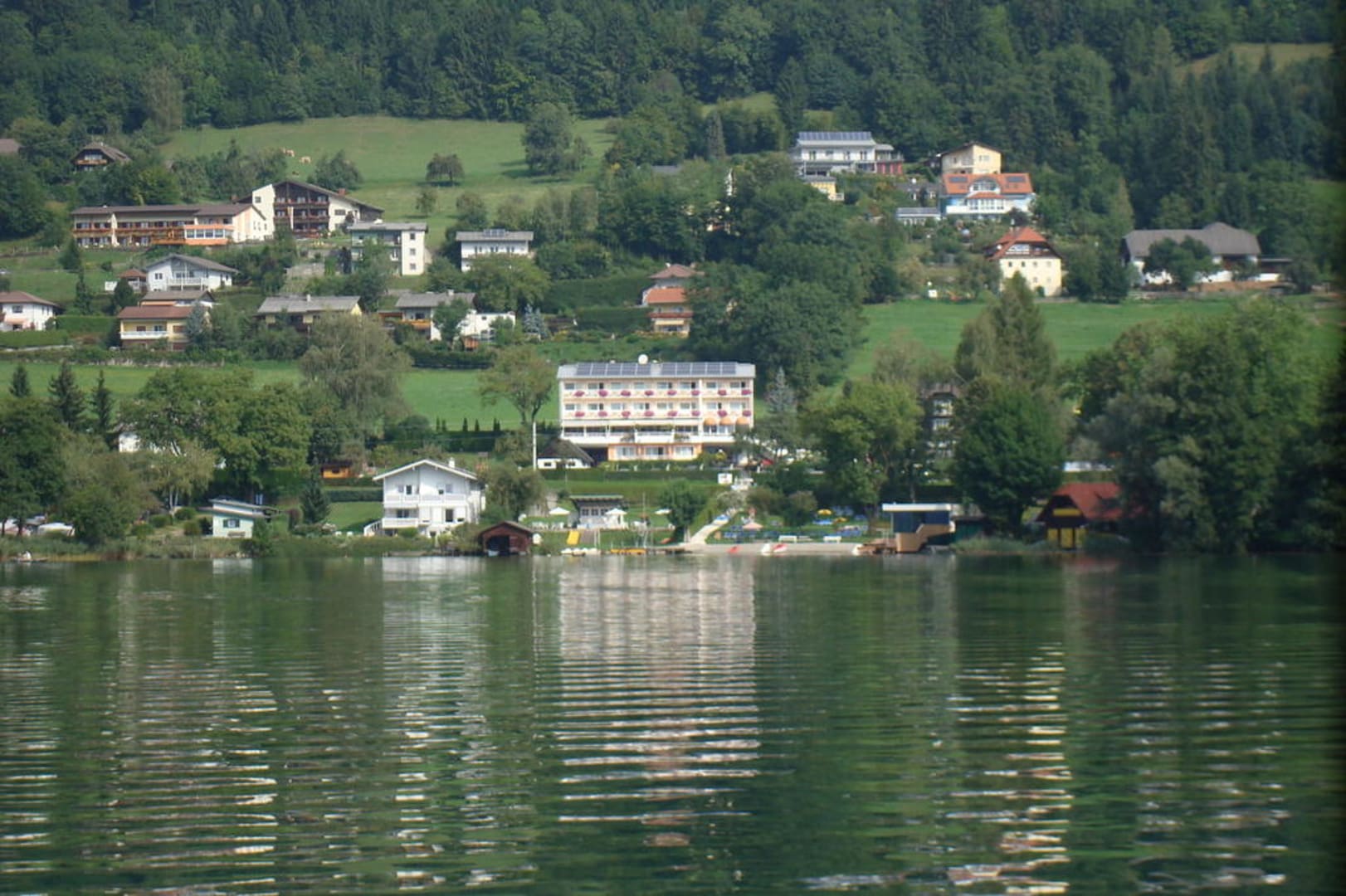 Blick vom See auf das Hotel