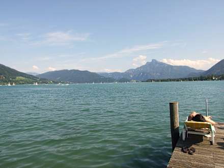 Blick auf Steg und Mondsee