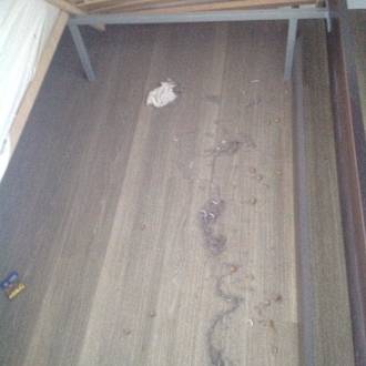 So sah es unter den Bett aus. Soviel zur Sauberkeit.
