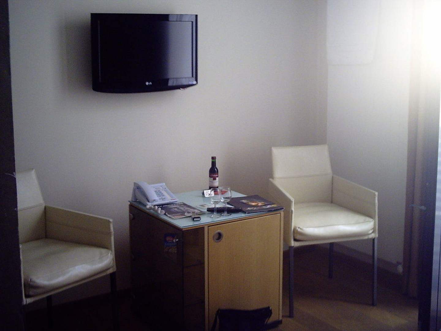 2 Stühle,Tisch (zugleich gefüllte Minibar),TV,völlig ausreichend