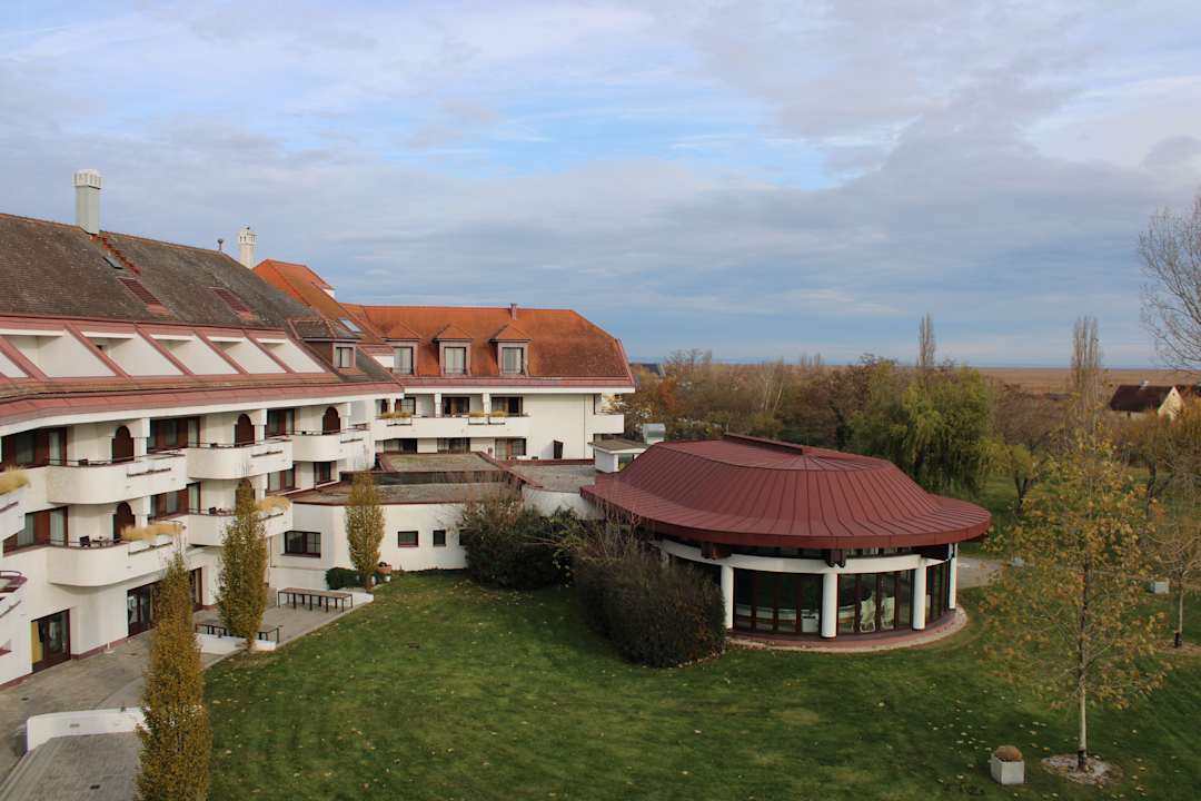 Blick Richtung Neusiedlersee ,das Hallenbad mit einer riesigen Liegewiese mit altem Baumbestand ! Wie schön muss es erst im Sommer hier sein !