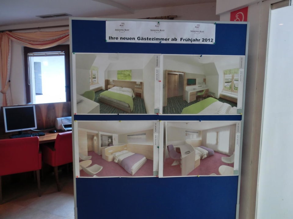 Umbau Zimmer 2012Informationstafel im Foyer des Seehotel Rust mit Präsentation der geplanten Umbaumaßnahmen in den Zimmern.