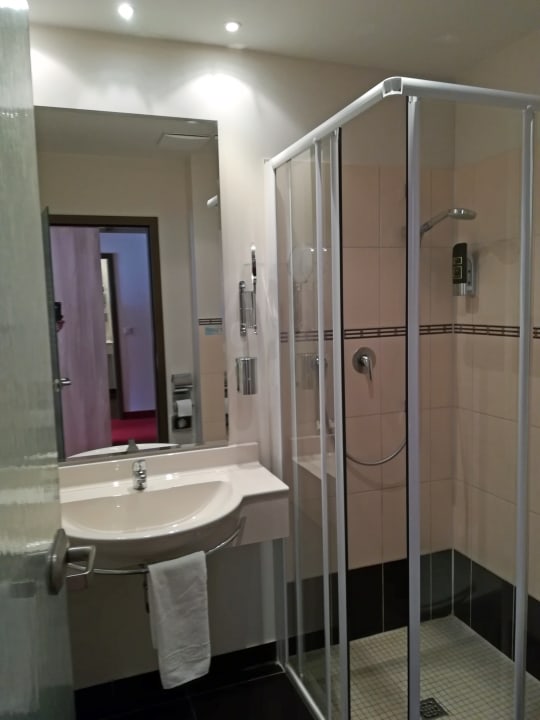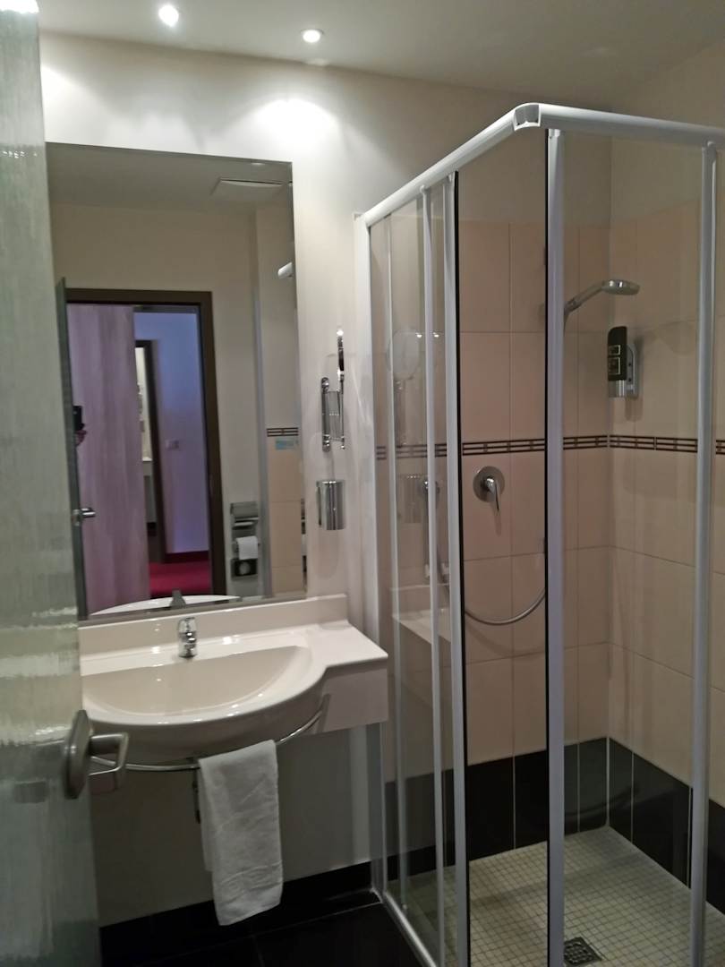 ein sehr gepflegtes Bad mit einer an angenehm großen Duschkabine