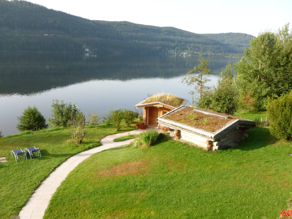 Sicht vom Zimmer auf die Aussensaunas