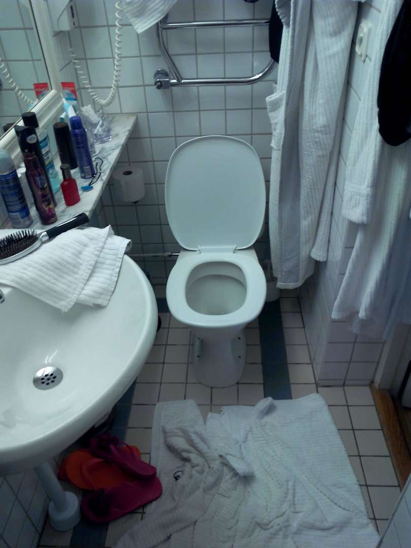 Bad 2,3 qm für 1 Doppelzimmer mit kaputen Fließen