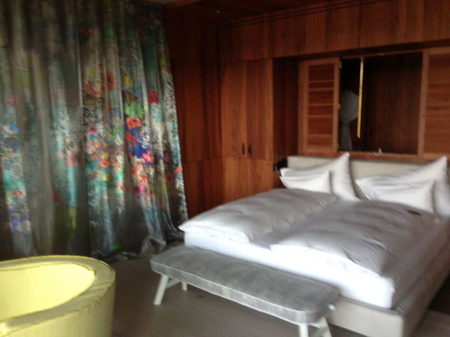 Hinter dem Bett ein ein Durchblick in die Nasszone