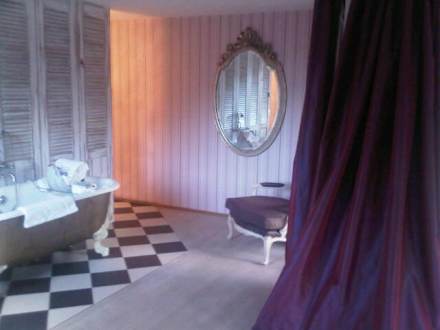 Bad, vorderer TeilIm vorderen Teil des Bads, welches offen ins Zimmer geht steht eine Traumhafte Badewanne mit Löwenfüssen