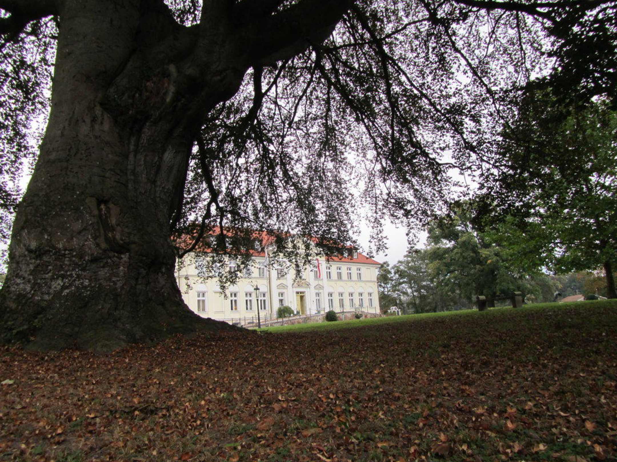 Blick auf das Schloss-Hotel vom weitläufigen Park aus.