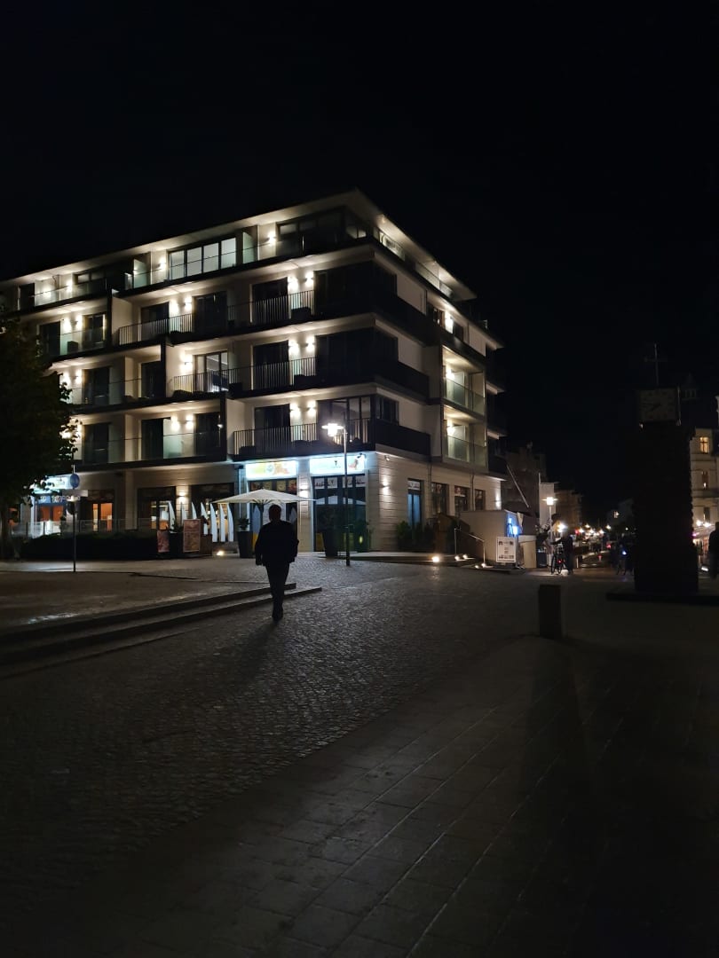 Am Abend blick vom Strand auf das Hotel