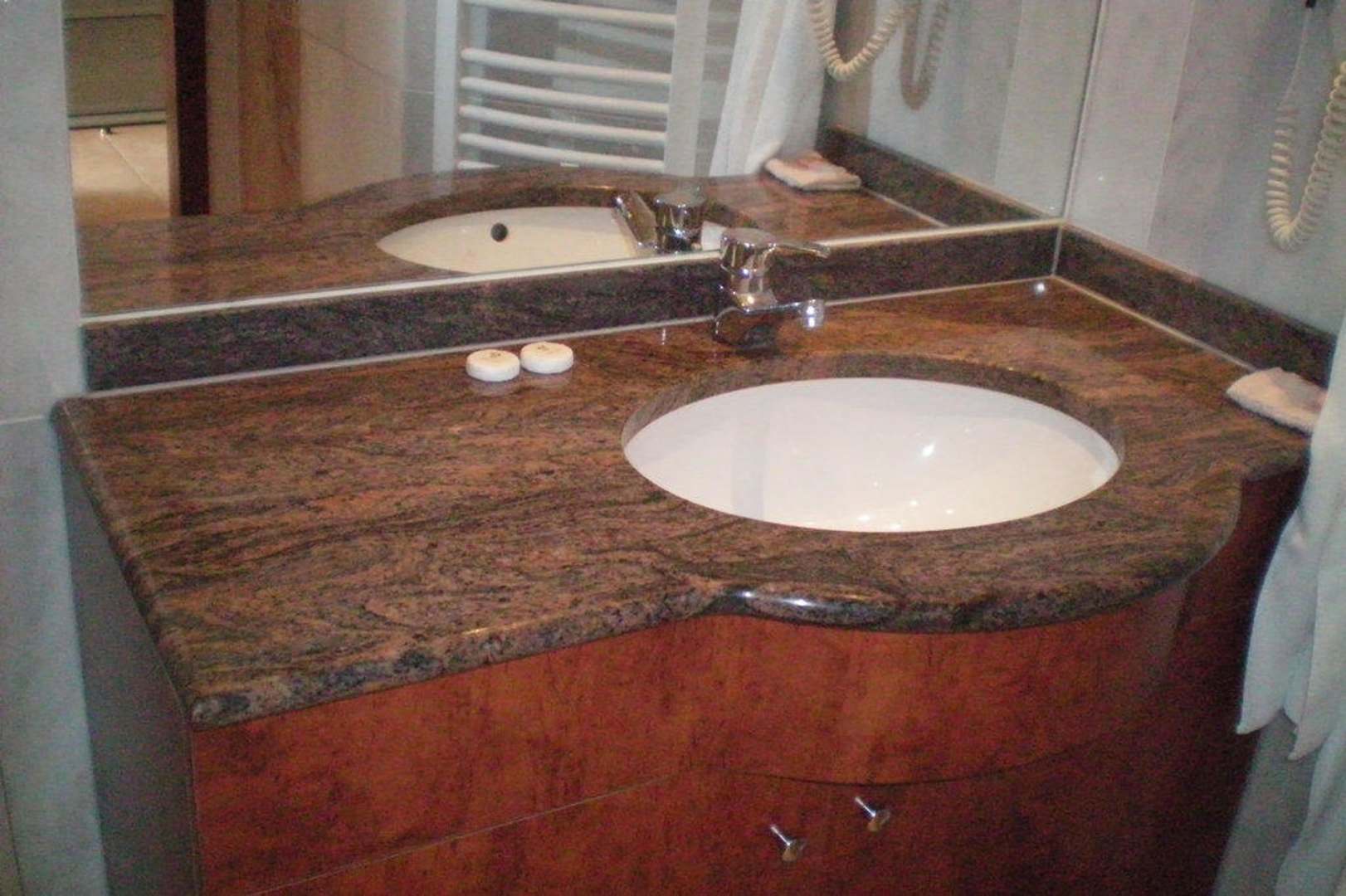 Bad und WC sind getrennt. Hier Waschtisch mit Dusche über der Badewanne.
