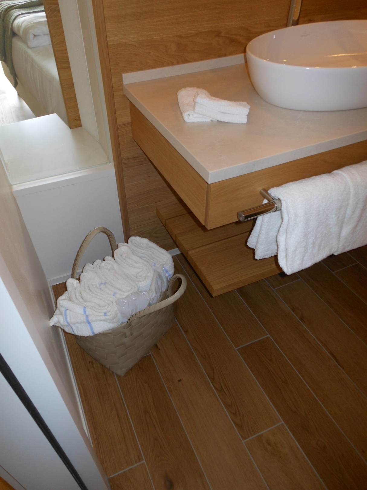 Doppelzimmer - Bad; Tasche mit Sauna-Handtüchern