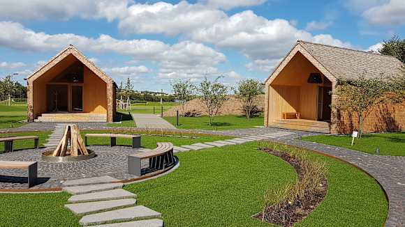 Sport & FreizeitKeltisches Saunadorf - rechtes Haus ist die Aufguss-Sauna und linkes haus ist die Kräter-Sauna.